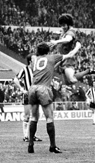 A 6ft 1in forward with good technique and great heading ability, Wales striker John Toshack joined Liverpool in November 1970 for a club record fee of £110, 000 from Cardiff City, where he had scored 75 goals in 162 League games and gained his first caps at senior international level. He was the ideal targetman and would later link up with Kevin Keegan to form one of the most successful strike partnerships in the history of English football. John made his Liverpool debut on November 14, 1970, in a 0-0 draw at home to Coventry City in the League, and scored his first goal a week later in a 3-2 League win against Everton at Anfield, heading home at the Kop end to become an instant hit. He followed up with another League goal, in a 1-1 home draw with Leeds in early December, and then managed three in successive games, a 2-0 win against Arsenal in late January and 1-0 wins over Leeds and West Ham in early February. Five goals in 21 League games was a decent start to Toshack's Anfield career but the season ended in disappointment for both him and the club as Liverpool could only finish 5th in the League and were beaten 2-1 by Arsenal in the FA Cup Final at Wembley (the photo above is during the game). The arrival of Kevin Keegan in August 1971 not only gave the club a boost but provided 'Tosh' with his ideal strike partner, a fast and skilful goalscorer who could profit from his promptings. Over the next few seasons, many Liverpool goals would result from Toshack finding Keegan, often with his head, though it was a reciprocal arrangement and, despite niggling injuries restricting him to 29 League appearances, the big Welshman finished the club's top League scorer in 1971-72, netting 13 times (to Keegan's nine), including both goals in a 2-0 home win against Sheffield United in February and another brace in a 2-0 home win over Ipswich Town two months later. However, John is probably best remembered that season for a 'goal' he didn't score, his disallowed late effort in the final League game, away to Arsenal on May 8, that would have given Liverpool the title. As it was, they had to settle for a 0-0 draw and a third-place finish, one point behind champions Derby County. Nevertheless, Liverpool were on the up after the sweeping changes to the playing staff manager Bill Shankly had made in the previous two years, and the 1972-73 season was when the new team would come of age. Due to injury and a loss of form that led to him being dropped, Toshack made only 22 League appearances but was still joint top scorer with Keegan on 13, hitting braces in a 2-3 defeat at Leicester City in August and a 3-1 home win against Chelsea in November, and his goals were an important factor as Liverpool won their first League title since 1966 and a record eighth in total. John was less prolific in Liverpool's UEFA Cup campaign, scoring just once in eight ties, in a 3-1 home win in the first leg of the quarter-final against Dynamo Berlin in December 1972, but he made his mark in the first leg of the two-legged final against Borussia Moenchendgladbach at Anfield, where his aerial power proved too much for the West Germans' defence, two of his headers setting up Keegan for a brace of goals as the Reds ran out comfortable 3-0 winners. Liverpool lost the away leg 0-2 but that was enough for a 3-2 aggregate victory and their first ever European trophy. Toshack had won his second medal of a memorable campaign.